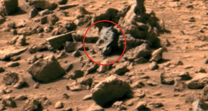 A imagem do que parece ser o crânio de um dinossauro foi capturada em solo marciano pela sonda da NASA Curiosity Rover, relata o jornal britânico Express.
